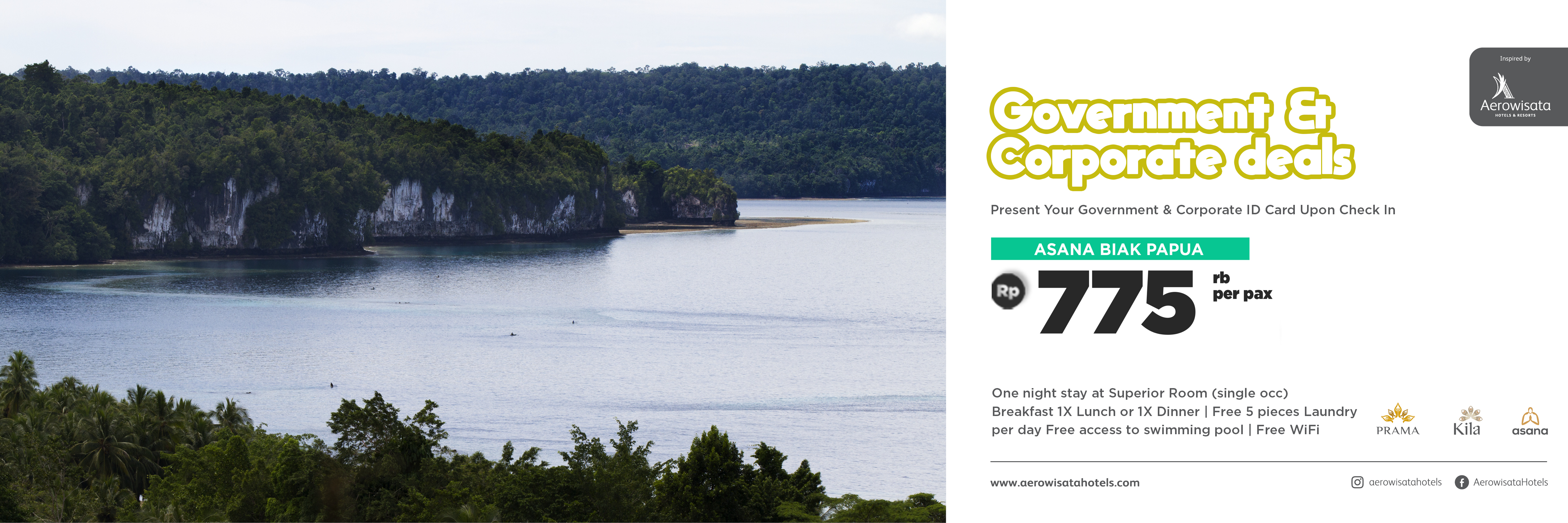 Syaratnya cukup perlihatkan ID Kantor Pemerintah atau Korporasi Anda pada saat kedatangan di hotel.